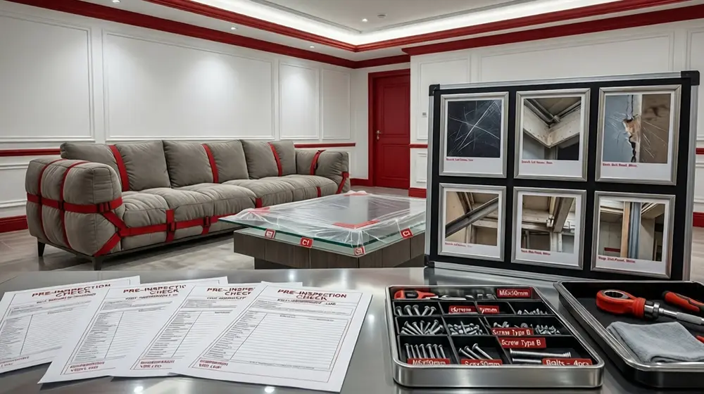 • Pre-move condition set: Minimum 8 photos per large unit, covering corners, edges, hardware, and any existing defects.